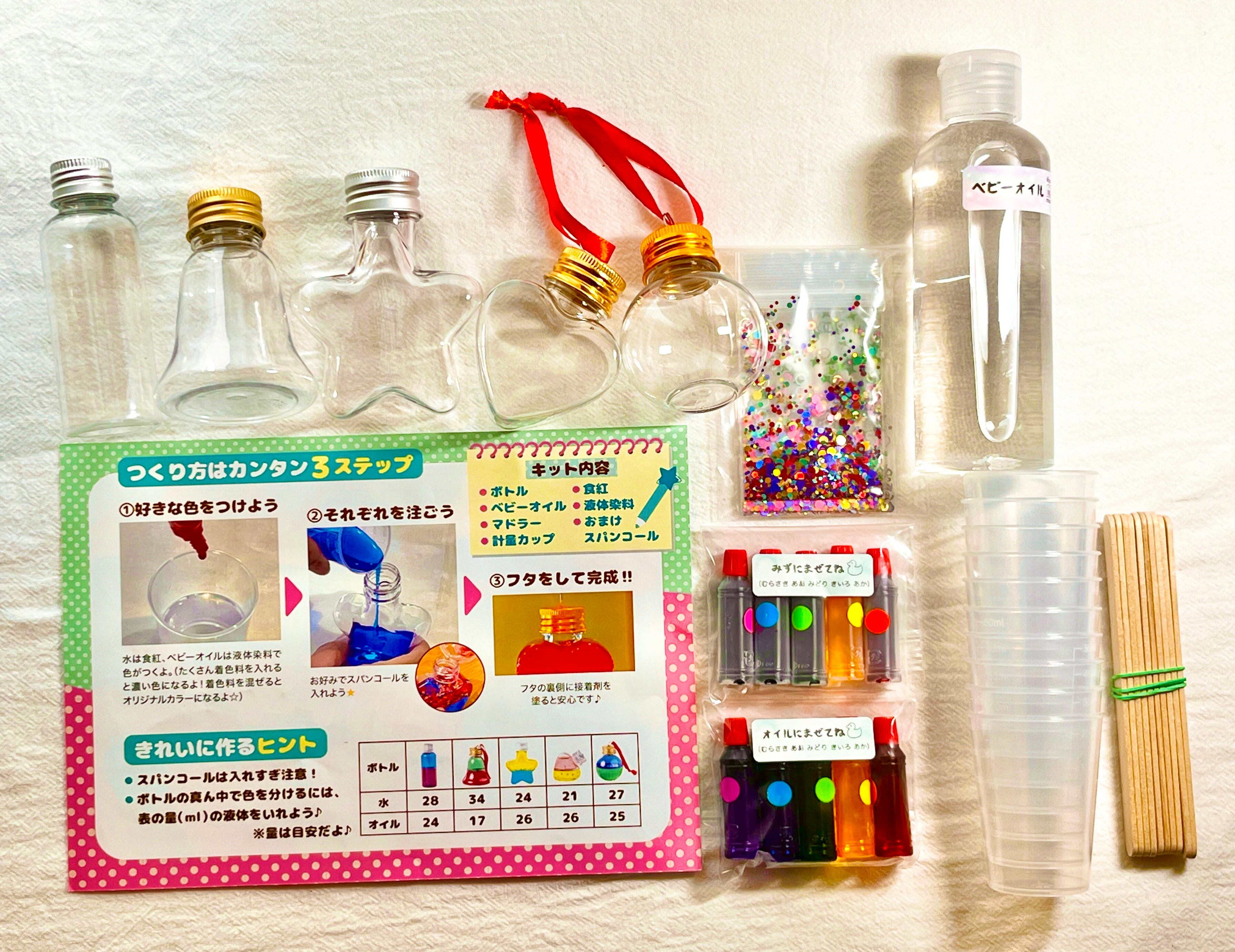 ご自宅で水をご用意いただくだけで、簡単にバイカラーボトルが作れるキットです(*^^*)
