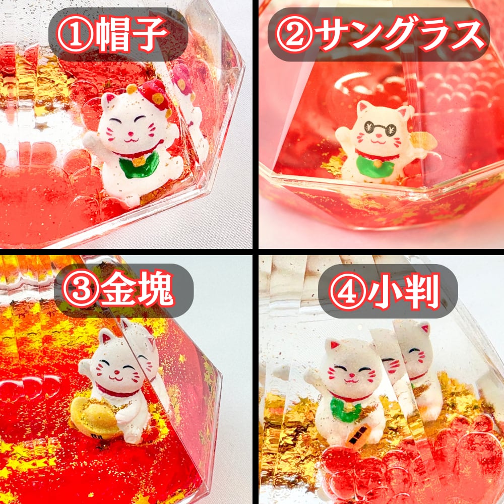 黄金のラメと星型スパンコールが、雫と一緒にゆっくり積もっていく様子は、まるで「福」が降り積もっていくみたい…。