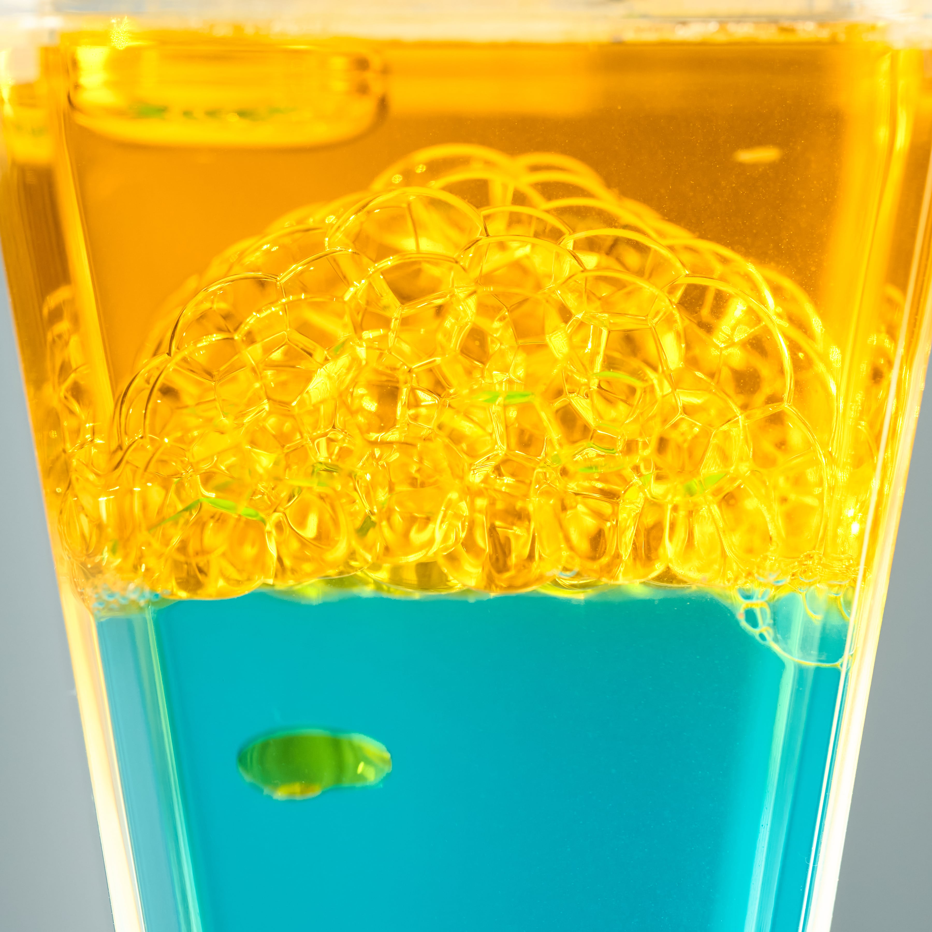 ブルー×オレンジのバイカラーになっており、少しずつ液体が入れ替わっていきます。