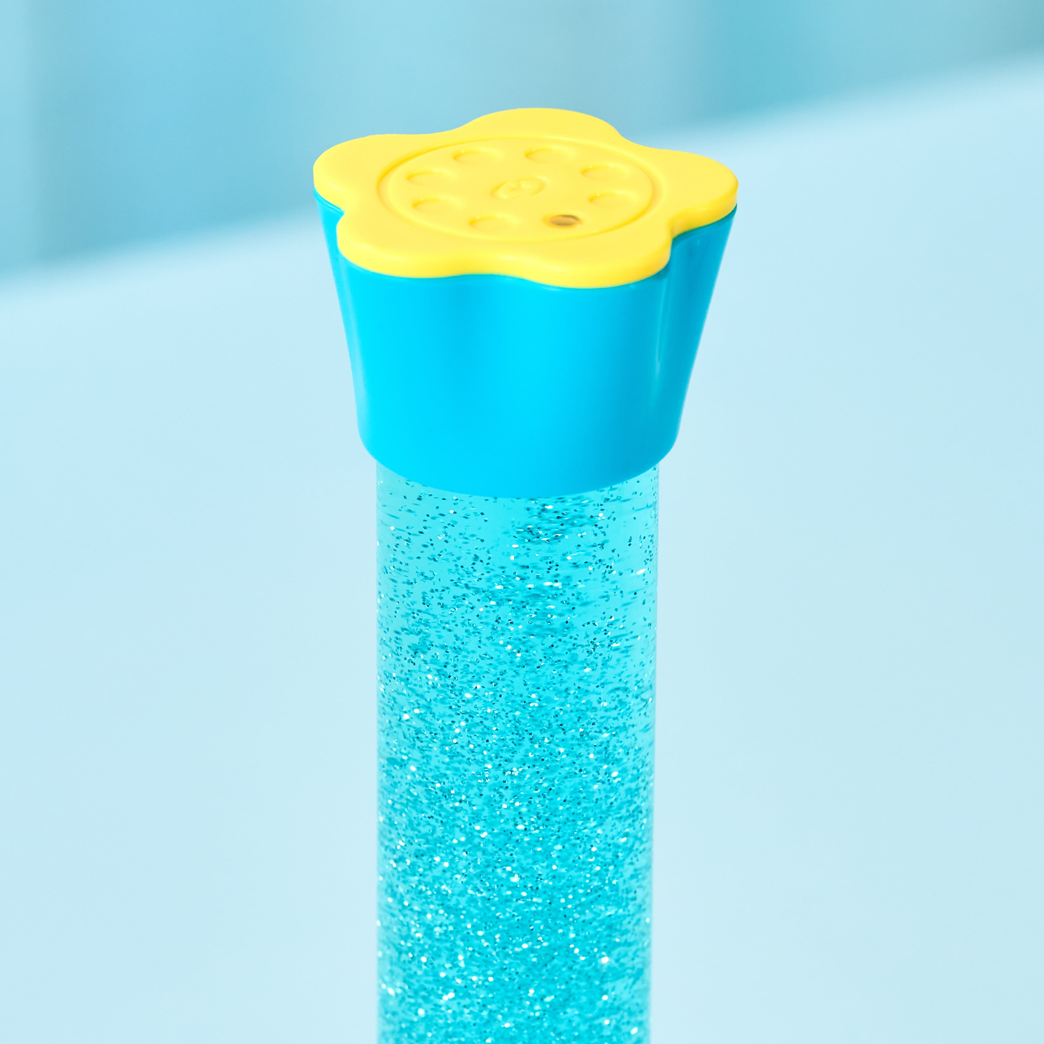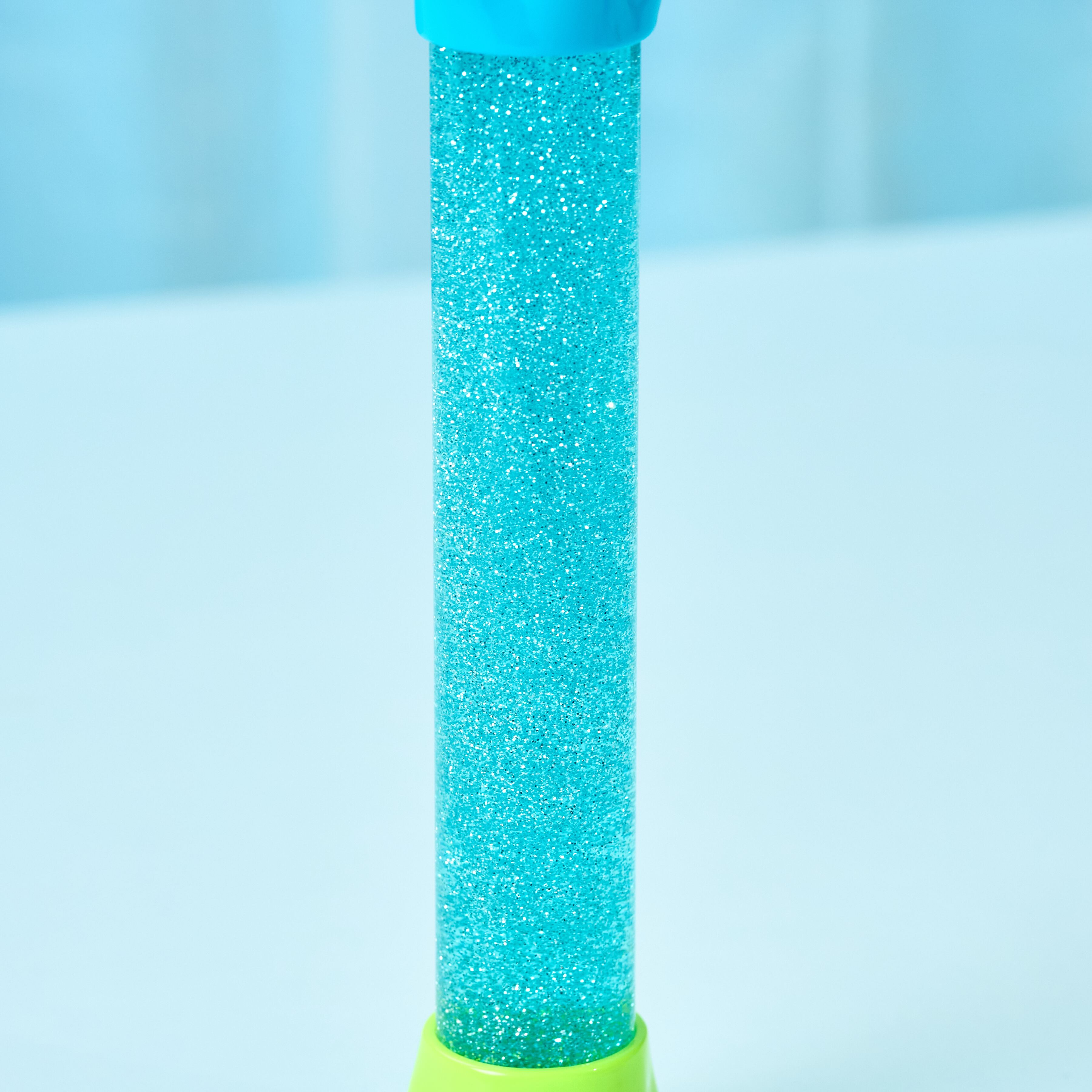 ライトブルーの液体の中を、シルバーのラメがシュワシュワはじける…。