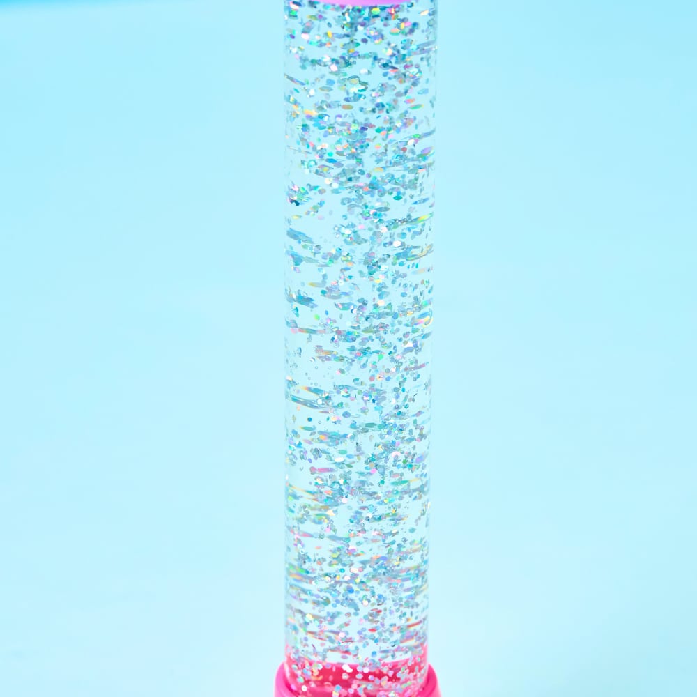 透明なボトルの中を、ダイヤモンドみたいなプリズムラメがキラキラとゆっくり昇っていきます。