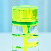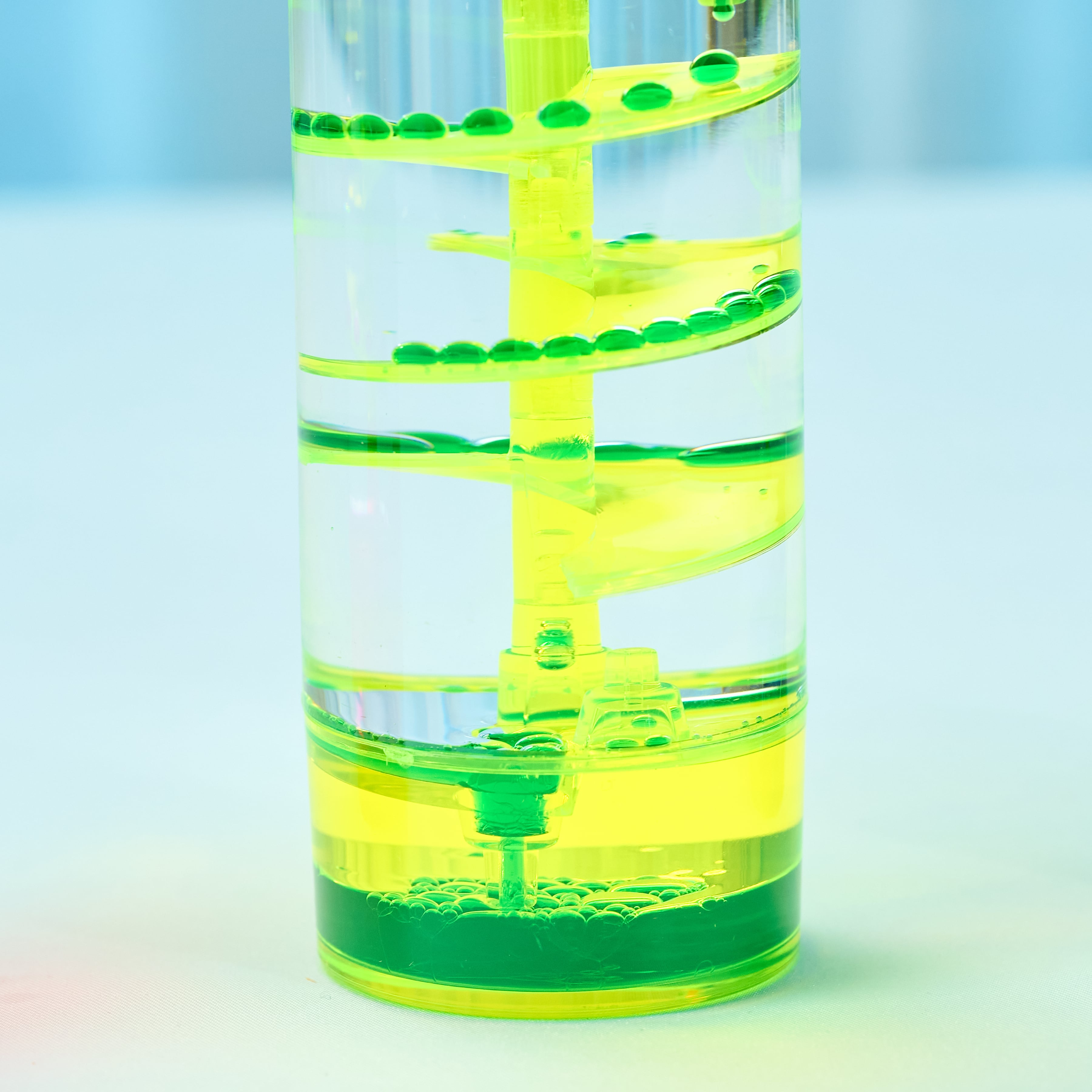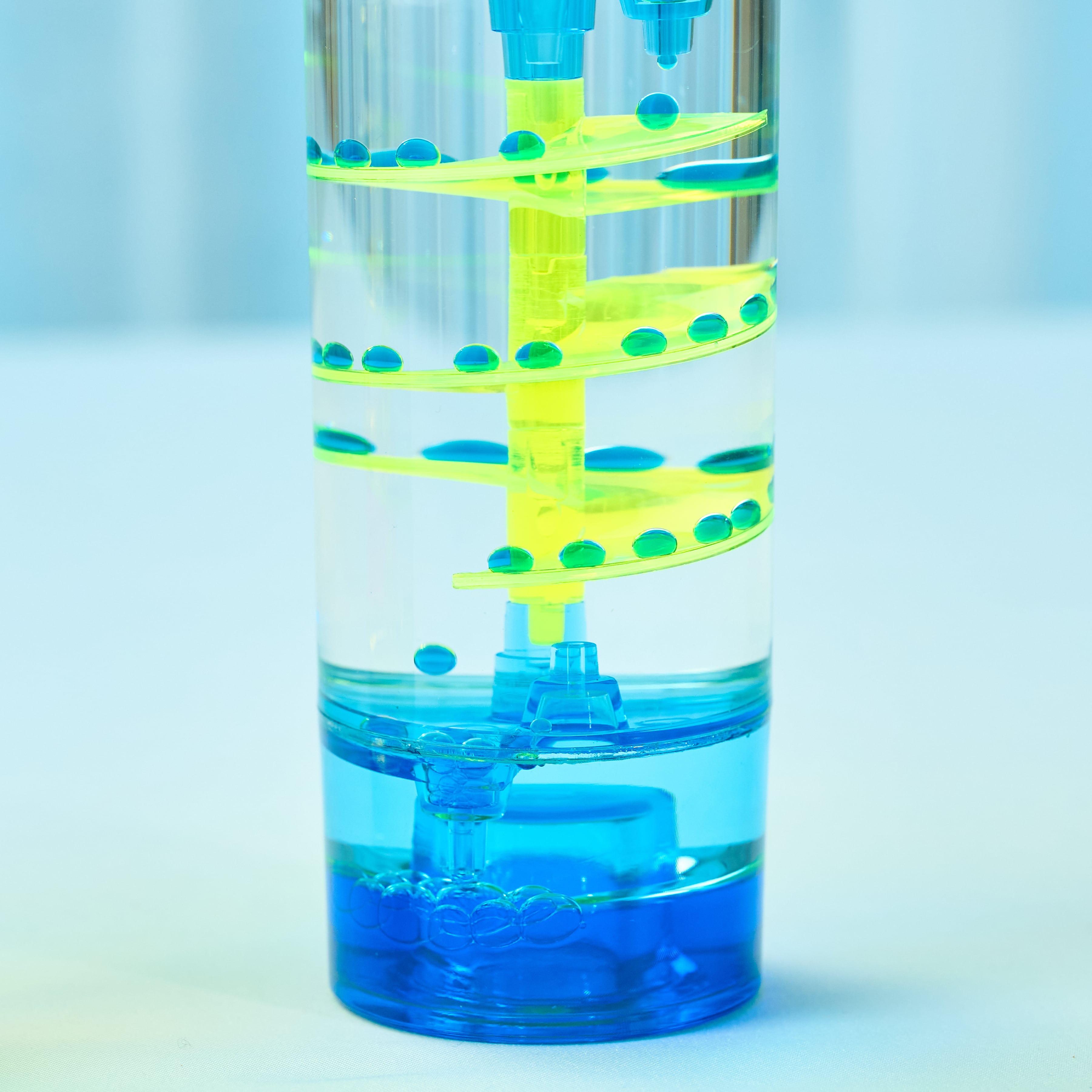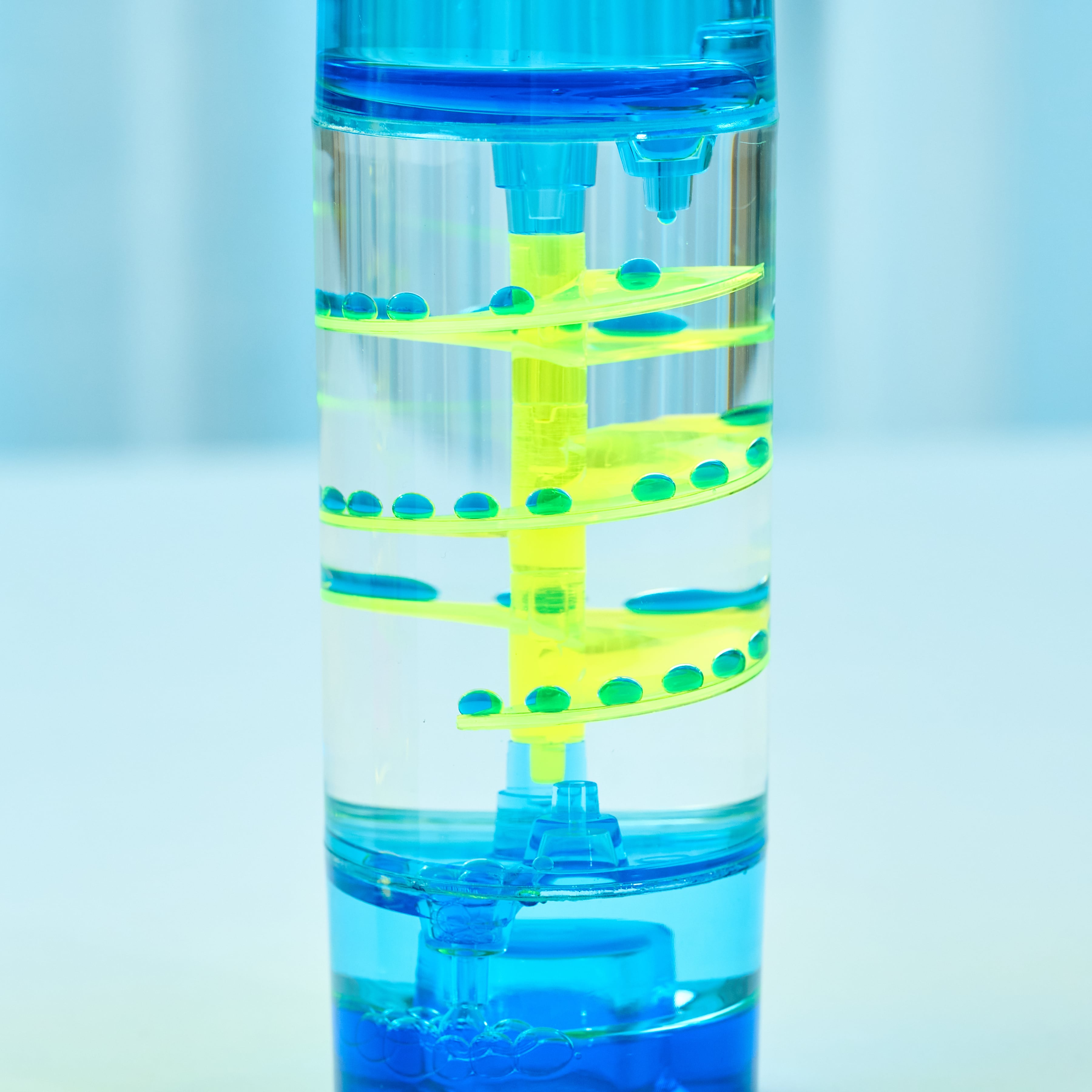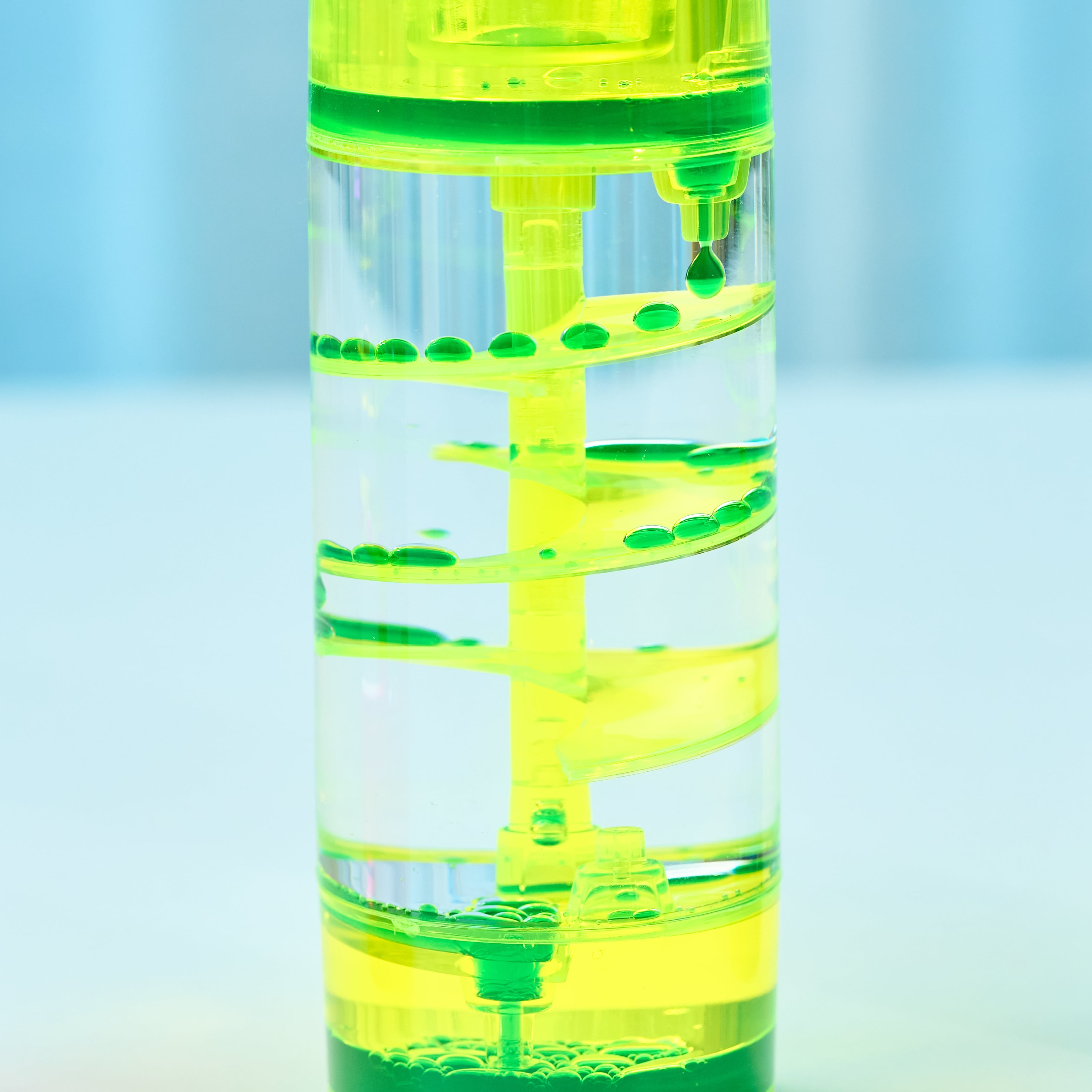 シンプルな円柱の中で、ネオンカラーのしずくが
