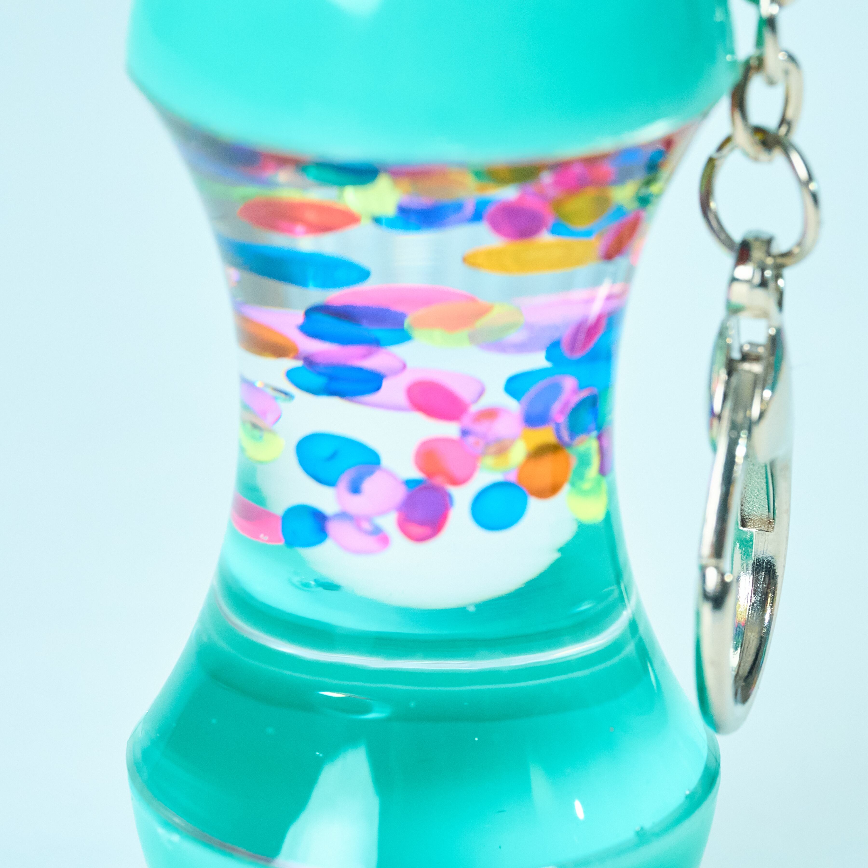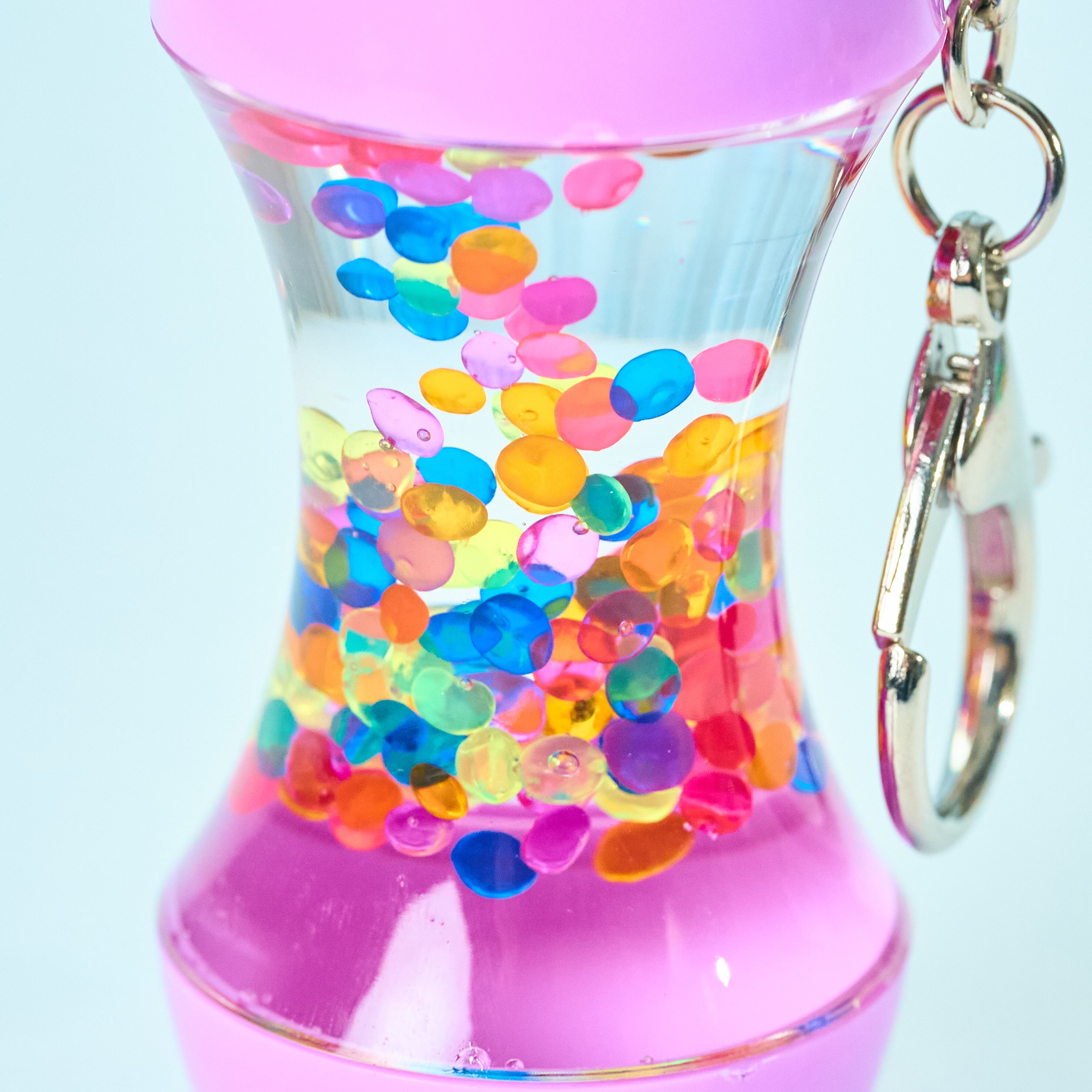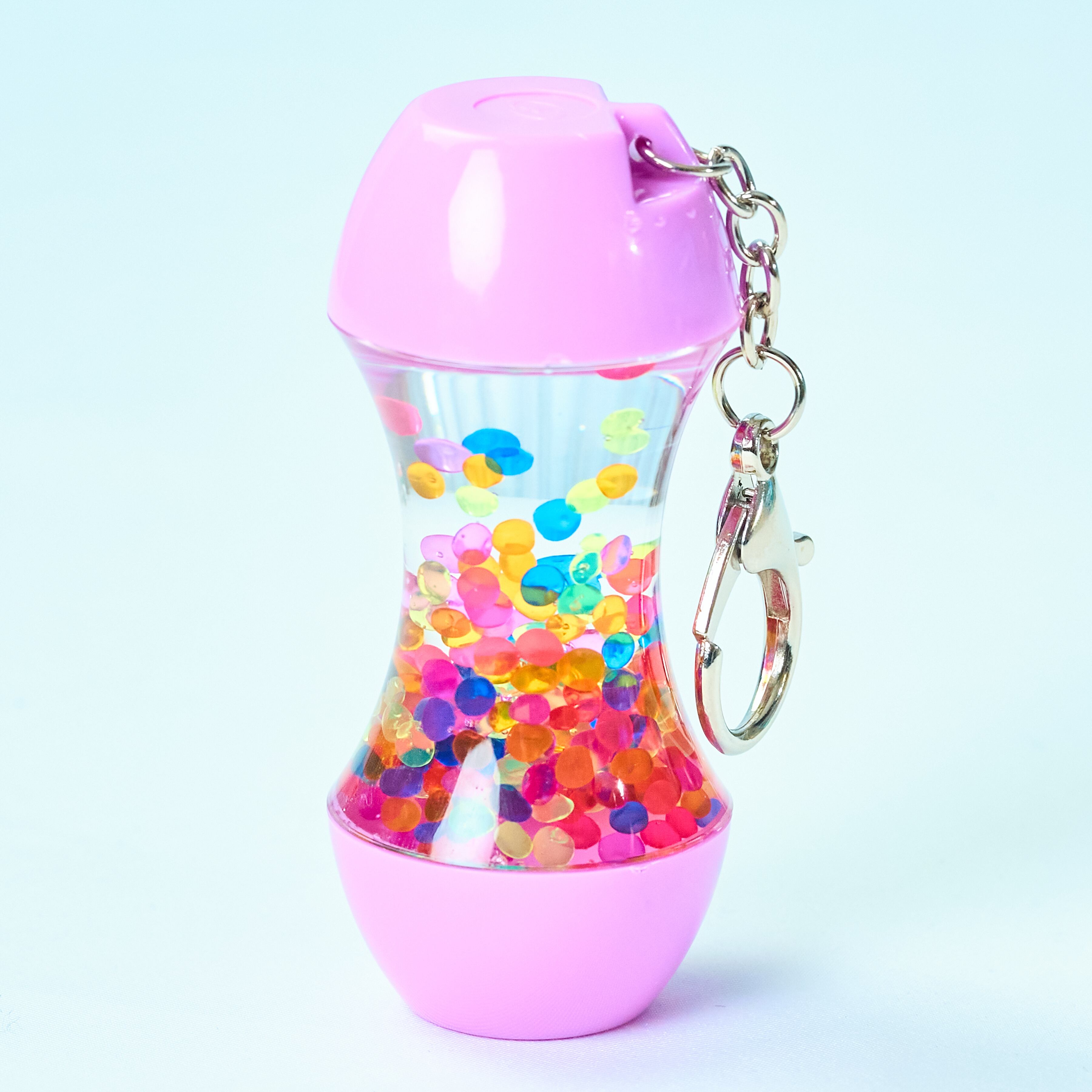 ころんとしたボトルの中で、カラフルなビーズたちがきらきら舞います。