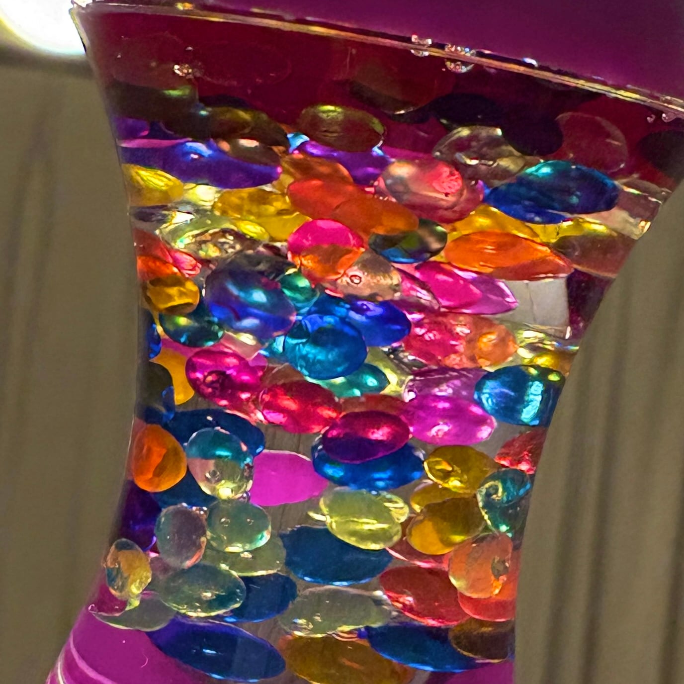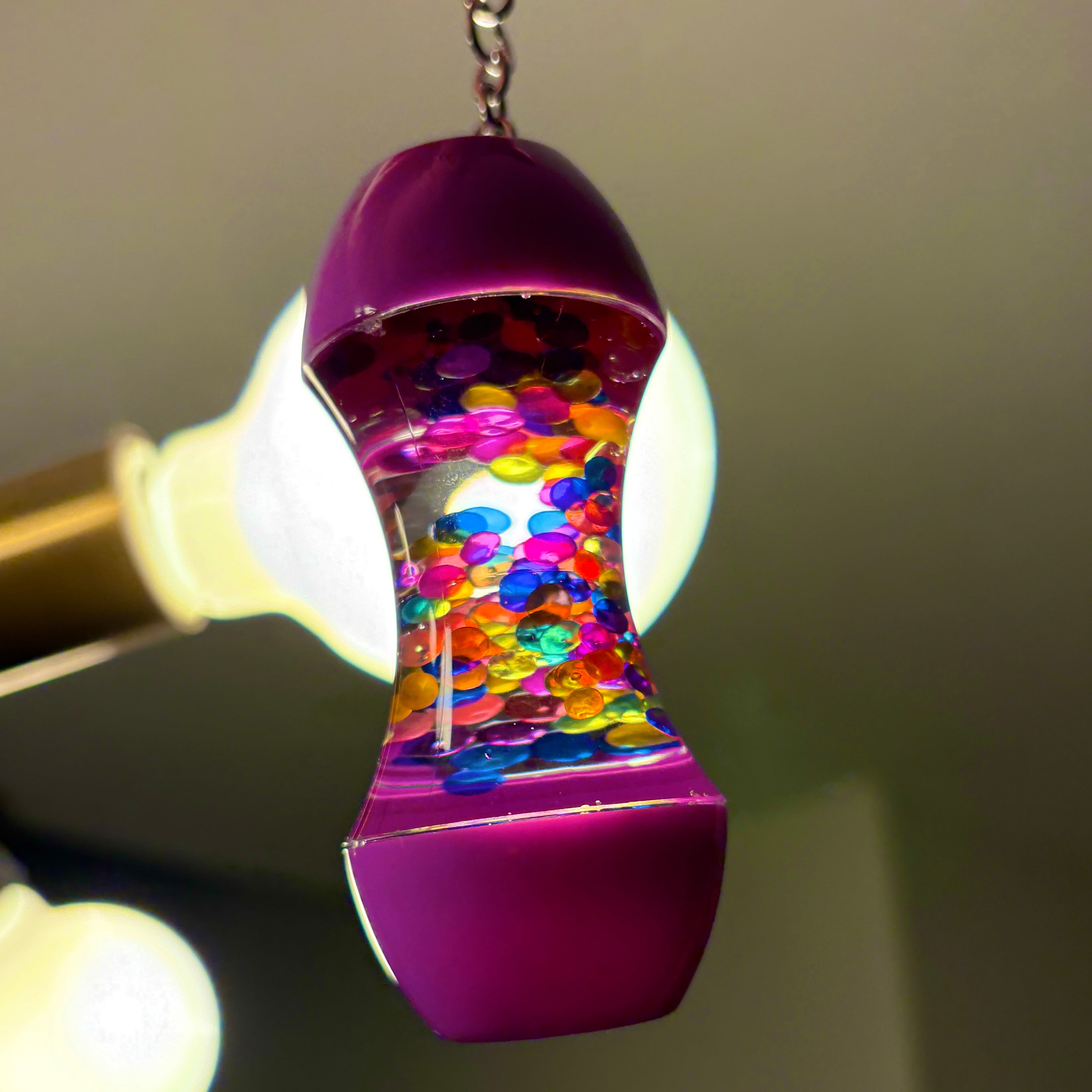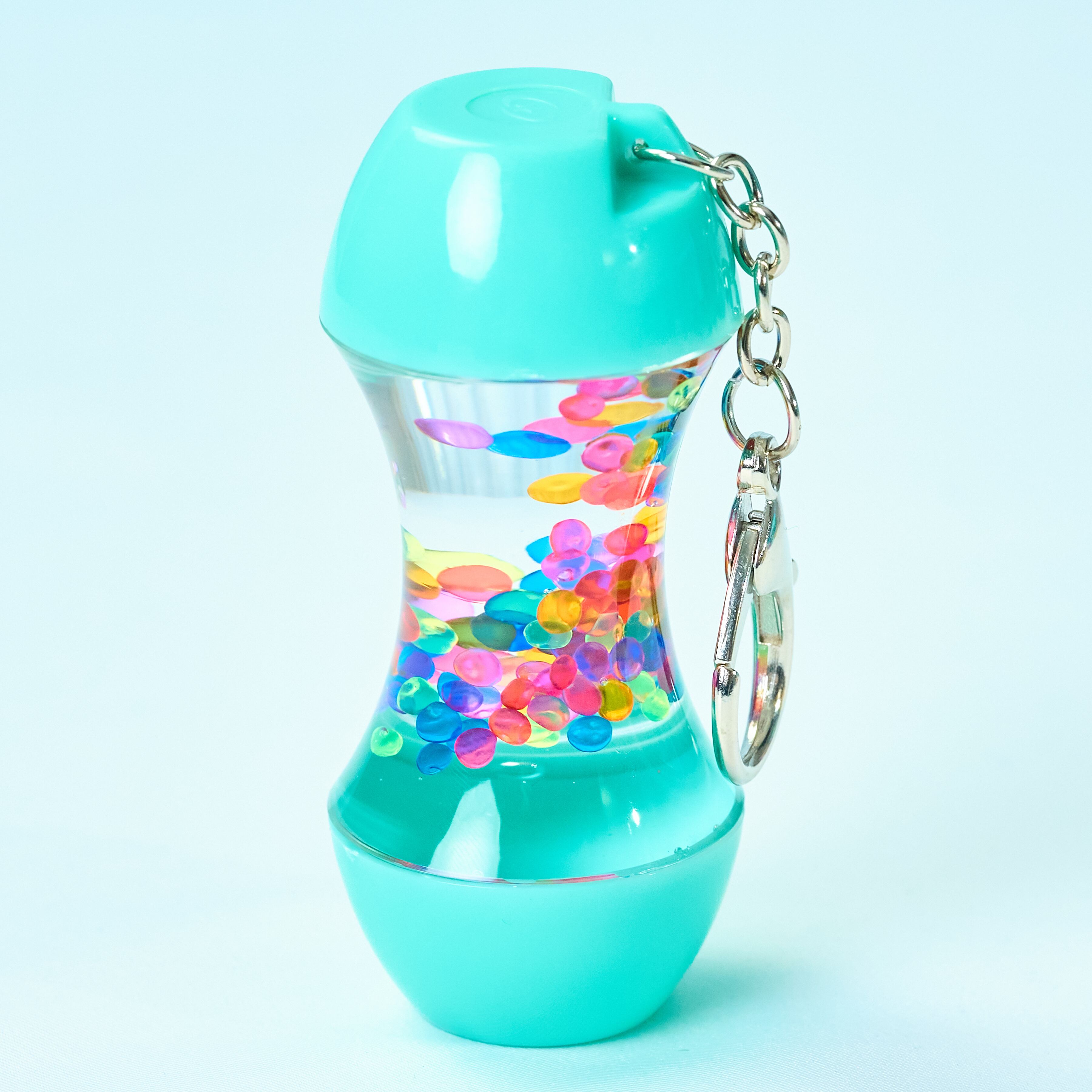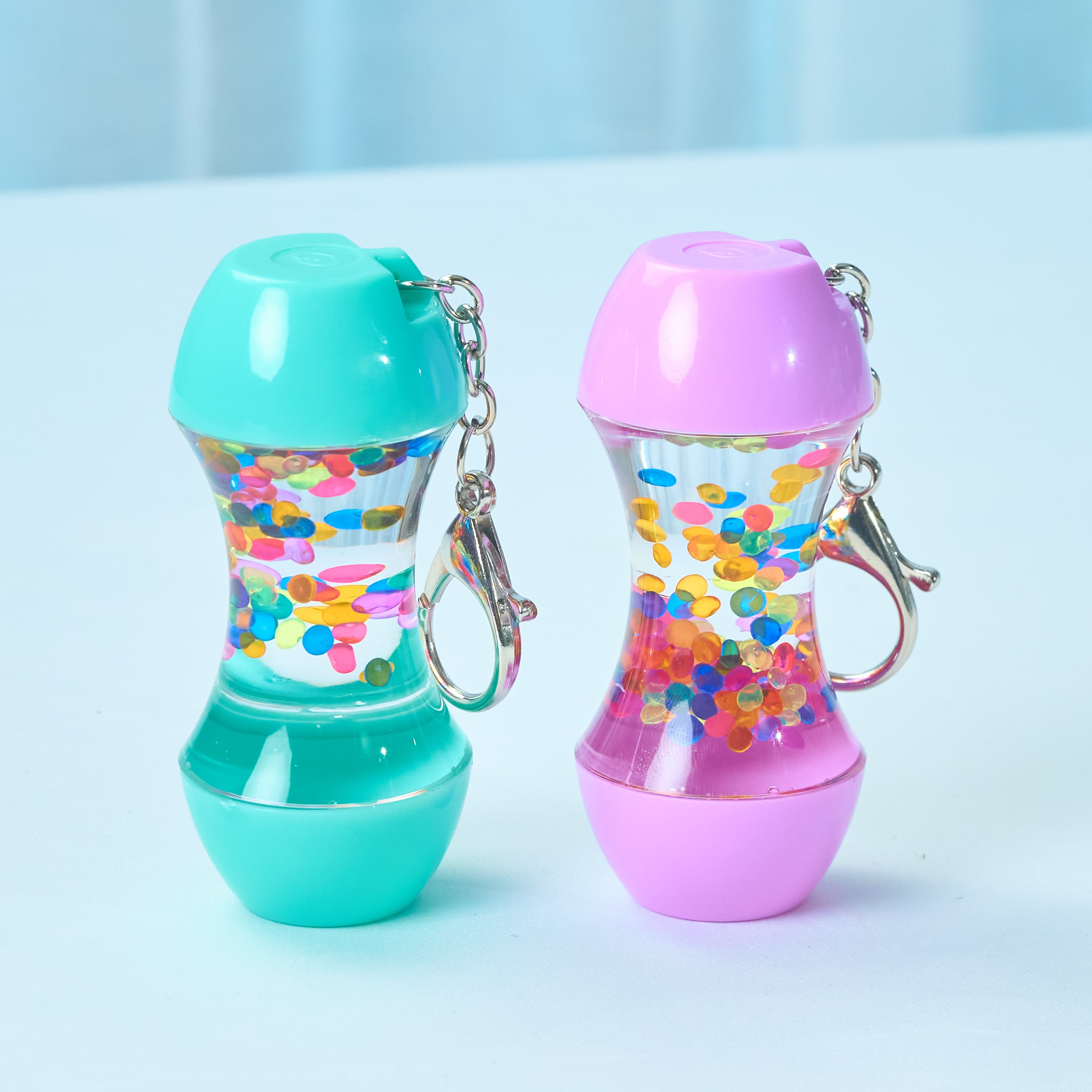ころんとしたボトルの中で、カラフルなビーズたちがきらきら舞います。